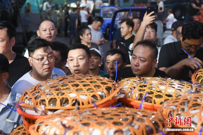 图为商户选购梭子蟹。中新社发 姚凯乐 摄