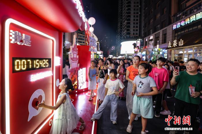 图为游客在青云市集排队体验打卡设备。中新社记者 瞿宏伦 摄