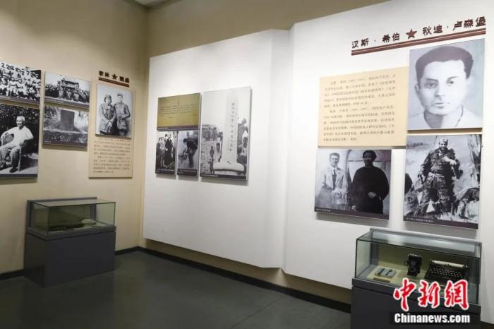 角落里,一个外国名字惹人注目,那是国际友人汉斯·希伯的事迹介绍。这位外国记者本可安全离开,却选择与战士们同生共死,用生命记录真相。