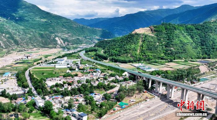 青山环抱下的甘肃陇南市宕昌县何家堡乡河口村。(无人机照片)刘国庆 摄