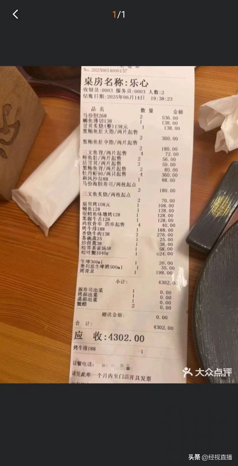 近期,有网友在社交平台发帖称,其在上海浦东新区一日式料理店就餐时,因误以为该店销售的套餐是自助形式,故在点单时点了不少菜,最后结账时发现消费金额竟高达4302元。
