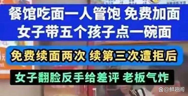 3女子带4孩子多次续面引争议 警方介入 续面风波升级!前几天,山西一家五口吃完饭组团逃单的事情已经够奇葩了。而在郑州,最近又发生了一件更离谱的事情。三个女子带着四个孩子到一家饭店吃饭,多次续面后与老板发生了争执。