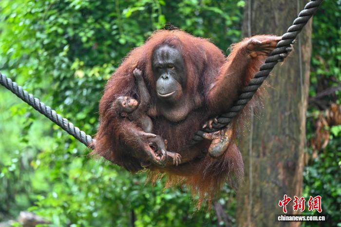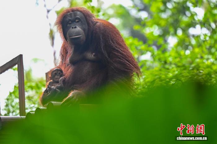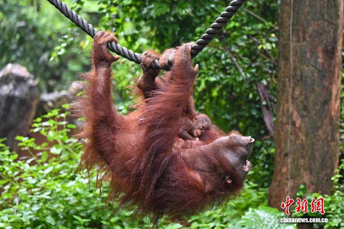 图为新生红毛猩猩“红毛丹”在母亲怀里。中新社记者 陈骥旻 摄