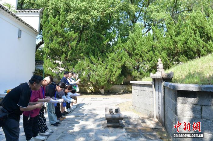 图为自媒体人在李白墓前吟诗。中新社记者 储玮玮 摄