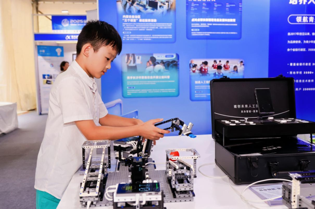 猿编程展台,小朋友体验“会学习的机械臂”