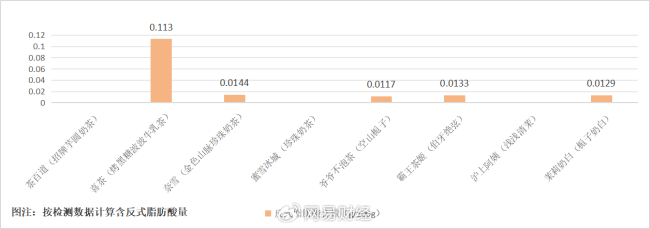 而上述被检出反式脂肪酸的5个品牌中,包括多家此前对外宣传自身“0奶精”、“天然”、“健康”的企业。其中,喜茶的烤黑糖波波牛乳茶以0.113g/100g反式脂肪酸含量居首,按500ml计算单杯含量约0.57克。而本次送检中价格最便宜的蜜雪冰城(珍珠奶茶)并未检出反式脂肪酸。