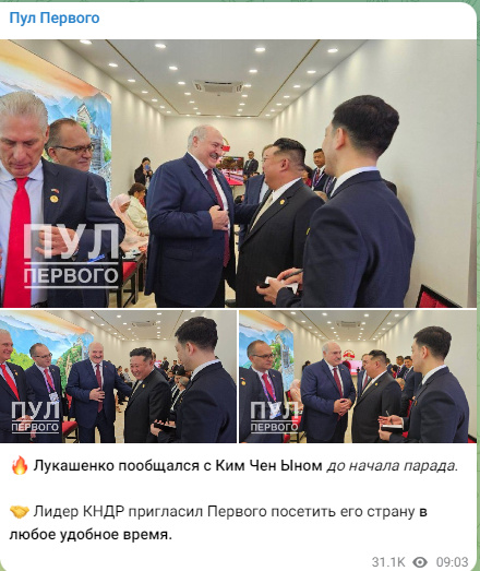 报道称,在阅兵式开始前,卢卡申科与金正恩进行了交谈。 金正恩还邀请卢卡申科随时访问朝鲜。
