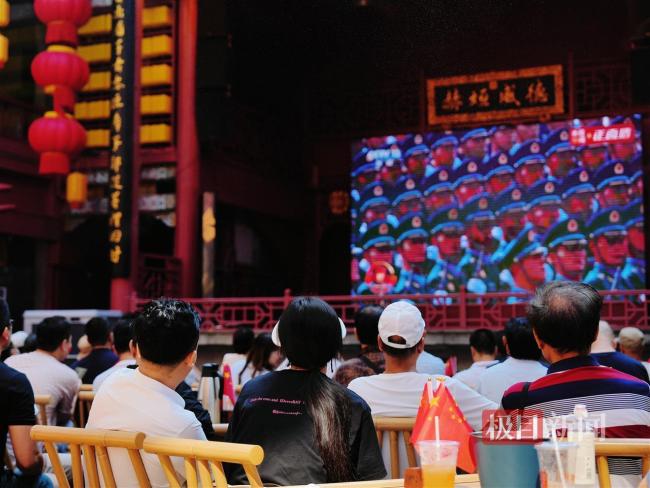 9月3日上午,纪念中国人民抗日战争暨世界反法西斯战争胜利80周年大会在北京隆重举行。在湖南长沙,一些电影院和商场开放场地,通过大屏幕进行阅兵直播,供市民观看。