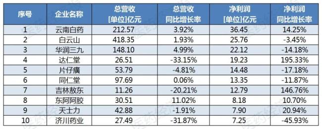 在政策红利持续释放与市场格局调整的双重背景下,中药行业呈现出明显的业绩分化。其中,白云山、云南白药等头部企业凭借品牌优势和规模效应保持稳定增长,营收规模均超200亿元。步长制药、达仁堂等展现出强劲的盈利增长动能,净利润同比增幅均超过190%。