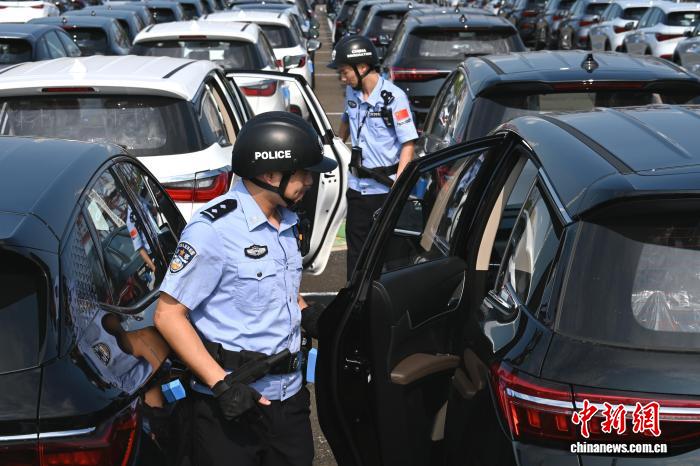 图为宁波出入境边防检查站民警在对即将出口的国产新能源汽车进行检查。雷秉融 摄