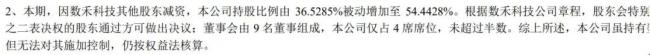 综上所述,本公司虽持有数禾科技54.4428%的股权,但无法对其施加控制,仍按权益法核算。