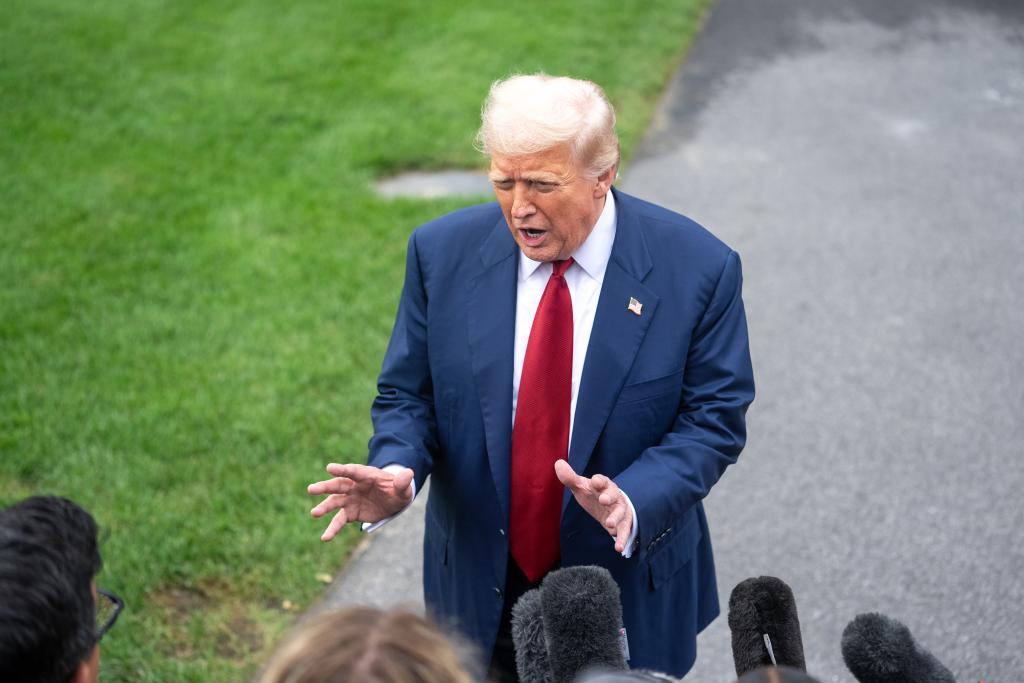 8月1日,在美国首都华盛顿白宫,美国总统特朗普回答提问。新华社记者 胡友松 摄