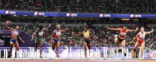 9月15日,2025年世界田径锦标赛女子100米栏决赛在日本东京举行。瑞士选手坎邦吉冲过终点,夺得冠军。赛后,她与亚军尼日利亚选手托比以及季军美国选手斯塔克一同庆祝胜利。