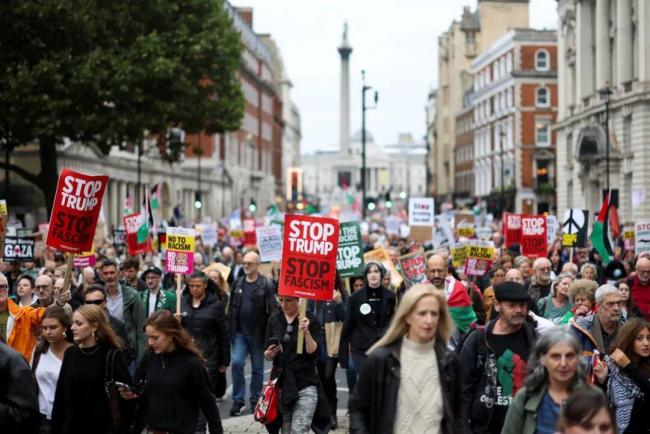 然而,英国官方礼仪的隆重与部分英国民众的抗议形成鲜明对比。近百名英国民众在温莎城堡外集会示威,抗议特朗普访问。民调显示,仅有16%受访英国人对特朗普政府持积极看法,约三分之一的民众支持在特朗普访问期间举行抗议。