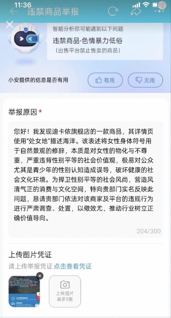 迪卡侬已删除争议广告文案 网友投诉物化女性!近日,有网友在社交平台发文质疑运动品牌迪卡侬在其官方平台介绍一款潜水服产品时使用的文案。该文案将海洋比喻为“处女地”,结合后一句读来带有明显不尊重女性的意味。部分网友认为这种描述是将女性身体符号用于自然景观的修辞,本质上是对女性的物化与不尊重,并在购物平台发起投诉。