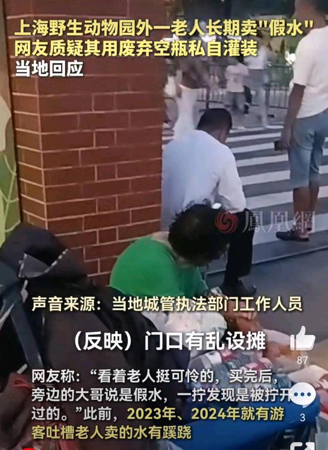 游客买水可怜老人却遭灌装假货 同情心不应被消费!别让“同情滤镜”成为消费善良的幌子。近日,“上海野生动物园外老人用废弃空瓶灌水卖游客”的新闻引发广泛关注。许多游客出于对老人的同情而光顾,却没想到买到了“假水”。这一事件敲响了公众道德与权益认知的警钟。