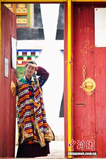 “疯装”与桑披岭寺、白藏房并称为“乡城三绝”,是当地女性的一种特殊传统服装,包括衬衣、外套、马甲、腰带、围腰,也是迎亲嫁娶、节日庆典等吉祥日子里必穿的盛装,其特别之处主要在于用色大胆且左襟在外,右襟在里。