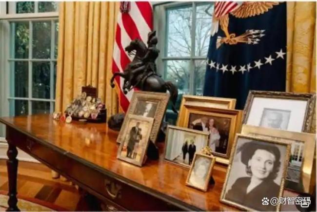 椭圆形办公室的设计灵感源自乔治·华盛顿时代的“总统接待室”,象征着开放与平等。1909年,威廉·霍华德·塔夫脱总统首次启用这个空间。这里不仅是美国总统的私人办公场所,更是美国政治舞台的核心所在——总统在这里会见外国领导人、签署重要法案、发表全国讲话。历任总统都会给这个空间打上个人烙印。肯尼迪选择了红色地毯和浅色窗帘,并摆放了航海主题的画作和模型。尼克松采用了蓝金配色,铺设了夫人设计的宝蓝色地毯。奥巴马任职期间,办公室颇具现代风格,还特地摆放了《解放奴隶宣言》和马丁·路德·金的雕像。拜登则沿用了克林顿时期的海军蓝地毯,风格低调稳重。
