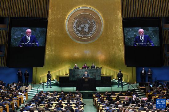 9月23日,在位于纽约的联合国总部,巴西总统卢拉出席第80届联合国大会一般性辩论时发表讲话,强调国际社会应捍卫多边主义和民主制度、反对单边制裁和干涉主权国家,并呼吁维护拉美地区和平。新华社记者李睿摄