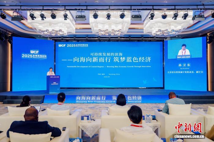 中新网盐城9月25日电(顾名筛)24日下午,由江苏省自然资源厅、盐城市人民政府、江苏省林业局、国家海洋信息中心共同主办的海洋经济高质量发展论坛在江苏盐城举行。中外嘉宾围绕“可持续发展的滨海——向海向新而行 筑梦蓝色经济”主题,共同探讨海洋产业高质量发展路径和海洋资源高水平保护利用举措。