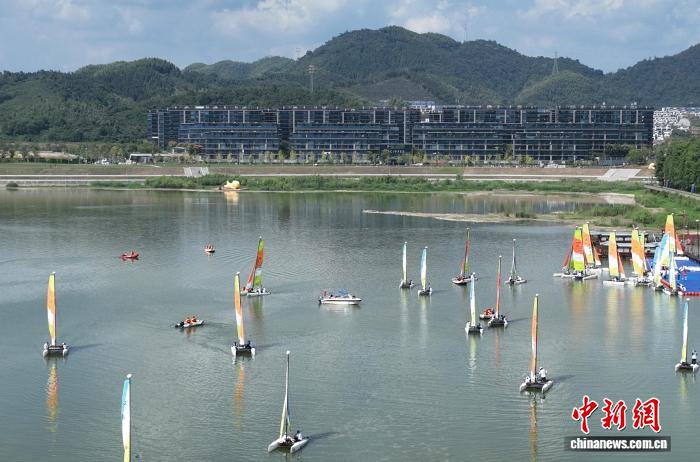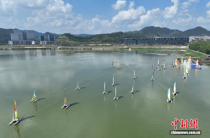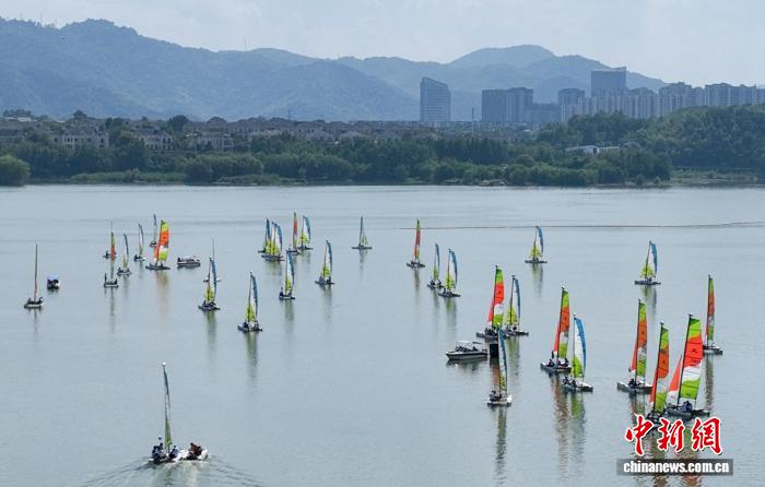 9月27日,众多帆船航行青山湖湖面上。当日,2025中国家庭帆船赛·杭州站在浙江杭州临安青山湖拉开帷幕,来自北京、上海、武汉等10个城市的40组家庭近百名选手在绿水青山间扬帆。中新社记者 王刚 摄