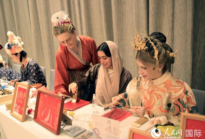 人民网迪拜9月26日电 (记者管克江) 品一杯云南咖啡、尝一口新疆大枣、做一把中式团扇……9月25日,中国驻迪拜总领事馆举办庆祝中华人民共和国成立76周年暨中秋招待会,会前的中国传统文化体验活动引人入胜,吸引众多来宾参与。