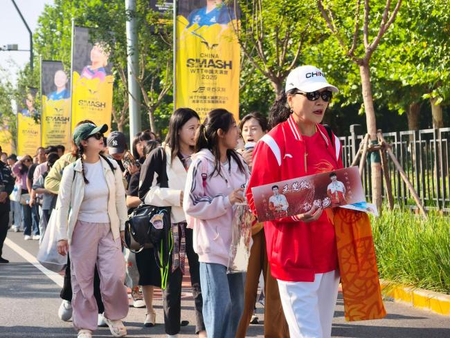 9月28日,WTT中国大满贯开幕式在热烈的氛围中即将开始。比赛场馆外,热情的球迷早早排起长队,秩序井然地等待入场,空气中弥漫着期待与兴奋。