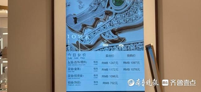 当天,在济南世茂国际广场一层黄金珠宝销售专区,有消费者正在选购婚嫁金饰。根据门店内的电子显示屏数据,周生生、潮宏基、中国黄金、周大福等多品牌足金饰品挂牌价涨至1242-1248元/克,相较前一日上涨12-13元/克。谢瑞麟、北京黄金、世纪金缘等部分黄金品牌叠加门店、商场优惠后,实际购入价格在1065-1147元/克。
