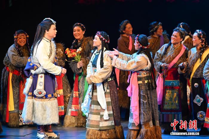 11月4日晚,第十四届中国艺术节闭幕式在重庆举行,第十八届文华奖(含剧目奖、节目奖、单项奖)正式揭晓。作为中国规格最高、最具影响力的综合性文化艺术活动,本届艺术节以“艺动巴山蜀水 共绘时代新篇”为主题,由中国文化和旅游部、重庆市人民政府、四川省人民政府共同主办。图为演员们在第十四届中国艺术节闭幕式中表演歌剧《尘埃落定》。中新社记者 何蓬磊 摄