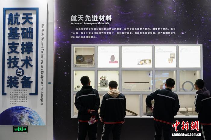 11月5日,黑龙江哈尔滨,学生在哈工大航天馆内参观航天先进材料。中新社记者 赵宇航 摄