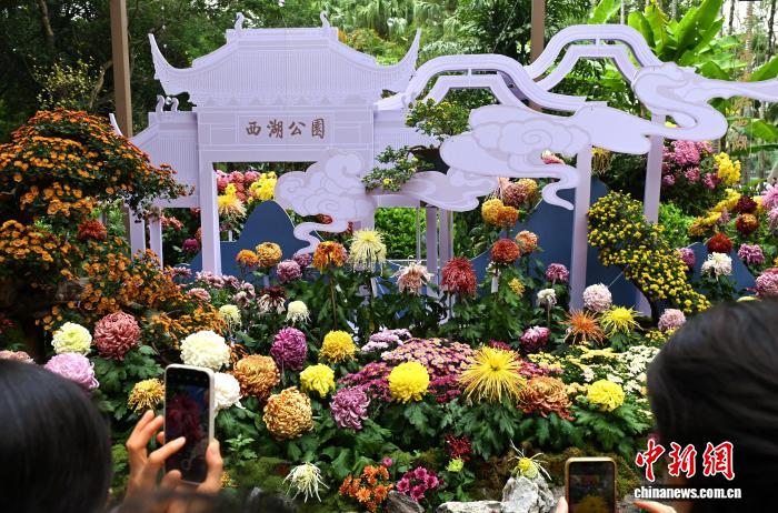 11月7日,市民、游客在福州西湖公园参观菊花展。中新社记者 吕明 摄