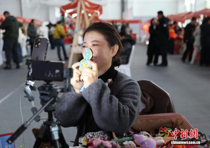 图为残疾人线上销售手工制品。中新社记者 于晶 摄