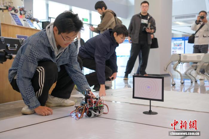 11月12日,浙江工商大学学生正在调试其设计的简易自行瞄准装置。曹丹 摄