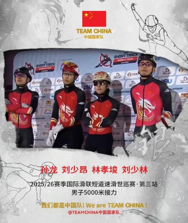 北京时间11月24日凌晨,2025-2026赛季短道速滑世巡赛第三站在波兰格但斯克结束。在男子5000米接力A组决赛中,由林孝埈、孙龙、刘少昂和刘少林组成的中国队以7分14秒517的成绩夺得银牌。加上林孝埈获得的500米银牌,中国队以两枚银牌的成绩结束了本站比赛。