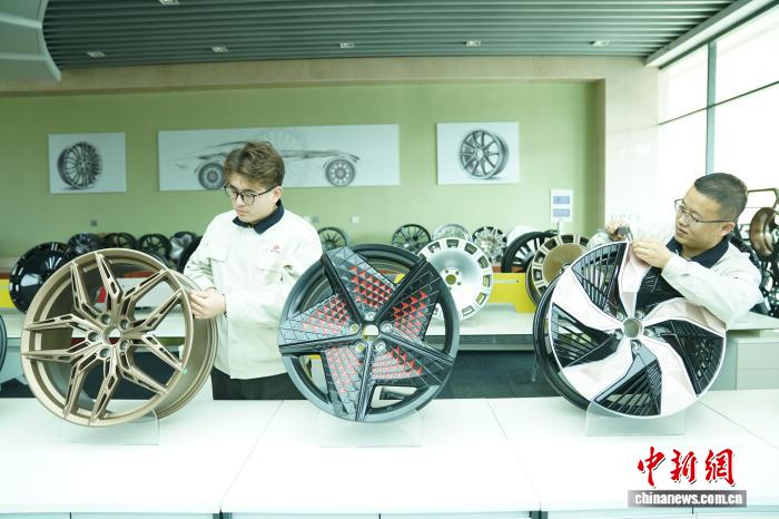 图为技术人员正在检测车轮。王继军 摄