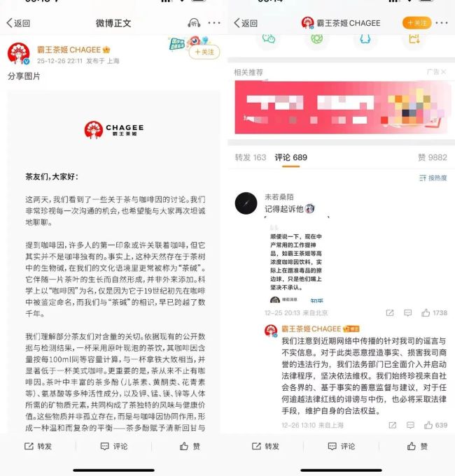 此外霸王茶姬表示,“我们注意到近期网络中传播的针对我司的谣言与不实信息。对于此类恶意捏造事实、损害我司商誉的违法行为,我们法务部门已全面介入并启动法律程序,坚决依法维权。”