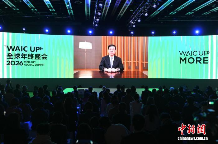 图为香港特区行政长官李家超作视频致辞。中新网记者 李志华 摄