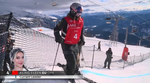 自由式滑雪世界杯瑞士拉克斯站女子坡面障碍技巧预赛,谷爱凌81.68分,刘梦婷74.68分,排名前两位晋级决赛,格雷默排名第三,谷爱凌两跳成绩都排名当轮第一。