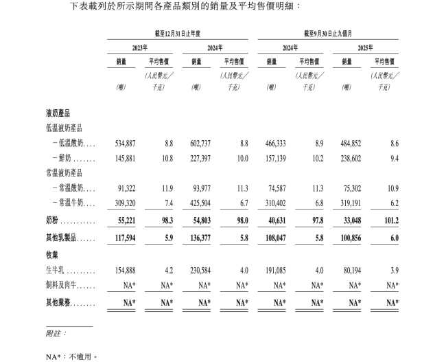 从产品层面来看,君乐宝旗下低温液奶和常温液奶两大核心品类的价格也是越来越低。招股书显示,今年前三季度,君乐宝旗下低温酸奶的价格从去年同期的8.9元/kg下降至了今年的8.6元,低温鲜奶从10.2元下降至了9.4元;常温酸奶从11.3元下降至了10.9元;常温牛奶从6.8元下降至6.2元。
