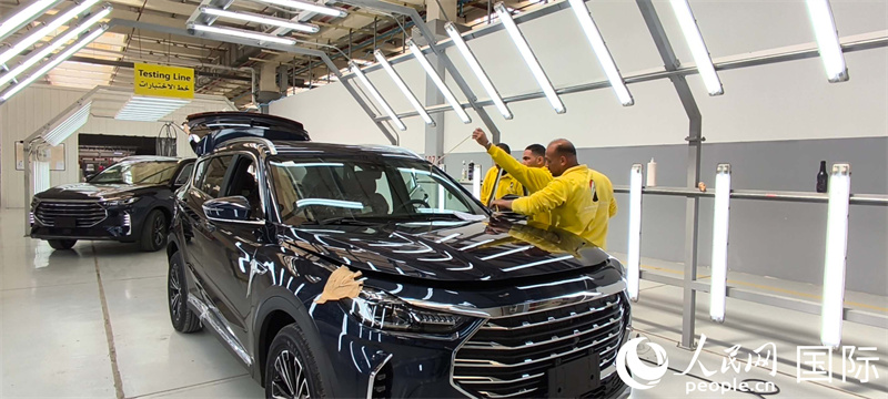 在总装涂装工厂,工人们正在对汽车进行检测 人民网记者 黄培昭摄