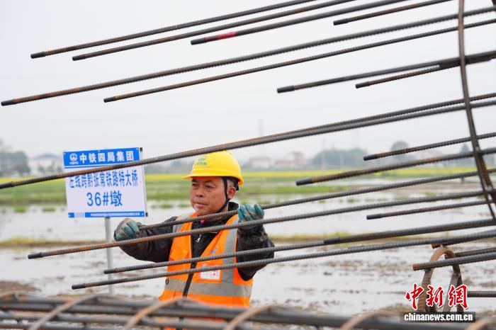 图为工人进行桩基钢筋笼吊装作业。中新社记者 杨华峰 摄