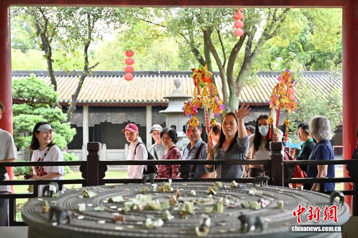 图为民众逛南海神庙祈福。中新社记者 陈楚红 摄
