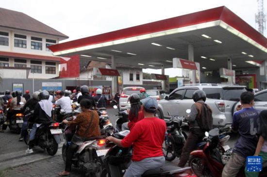 3月31日,人们在印度尼西亚梭罗一处加油站排队加油。新华社发(布拉姆摄)
