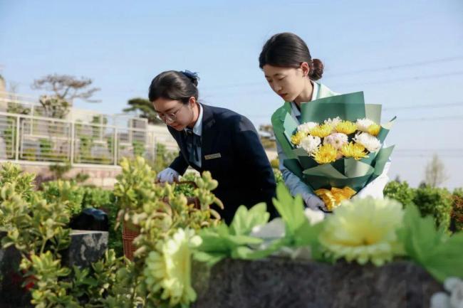 对于洛阳商业职业学院的大二学生张明雨来说,这片园区她已经很熟悉了。学习陵园服务与管理专业的她,和同学一起来到凤凰山生态纪念园实习,他们的工作包括学习葬礼主持、进行代客祭扫、协助整理园区等。当初选这个专业时,家里人有点反对,觉得不太吉利。后来经过慢慢沟通,他们也理解了,最终支持了她的决定。张明雨坦言自己有些轻度社恐,所以选择了殡葬这一行。“这个行业很纯粹,你用心做好服务,家属能感受到,逝者也能得到尊重。不需要太多寒暄和社交,踏实做事就行。”