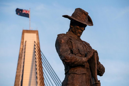 这是2019年9月10日拍摄的澳大利亚悉尼的安扎克桥(澳新军团桥)旁的澳大利亚士兵雕塑。新华社记者白雪飞摄
