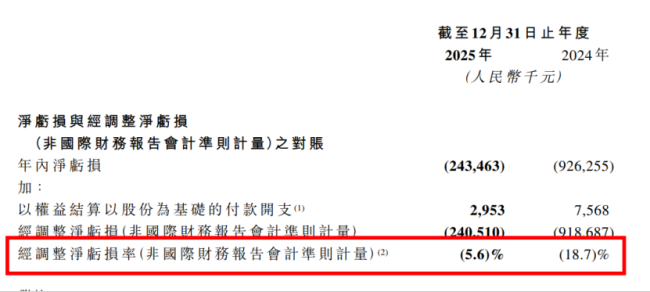 尽管奈雪的茶营收逐步下滑,但利润端方面,亏损幅度在2025年显著收窄。2024年公司全年净亏损9.26亿元,2025年经调整净亏损从2024年的9.19亿元收窄至2.41亿元,亏损同比减少73.8%,经调整净亏损率从2024年的-18.7%收窄至-5.6%。此外,在现金流方面,2025年公司经营活动所得现金净额同比增长35.7%至2.736亿元,经营造血能力有所改善。资金储备方面,截至2025年末,集团持有现金及存款共计26.58亿元。
