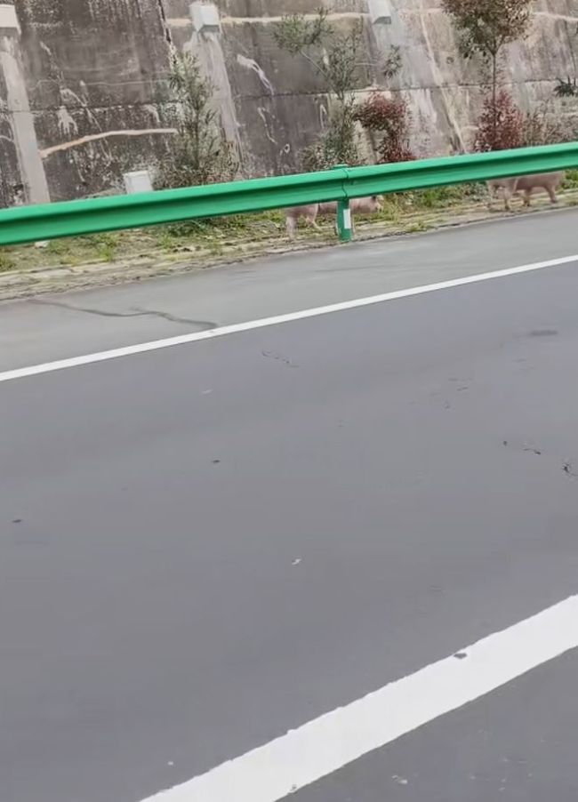 视频中,这些猪一点也不认生,下车后就开始四处溜达,有的闻闻这,拱拱那,悠哉游哉地散步,仿佛在逛自家后院。高速路上车来车往,那些猪大摇大摆走在路中间,后面的小车狂按喇叭减速,司机看得目瞪口呆。有一头猪冲到对面车道,差点被一辆白色SUV撞上,SUV紧急打方向盘才避免了事故。