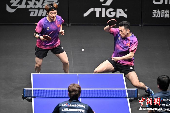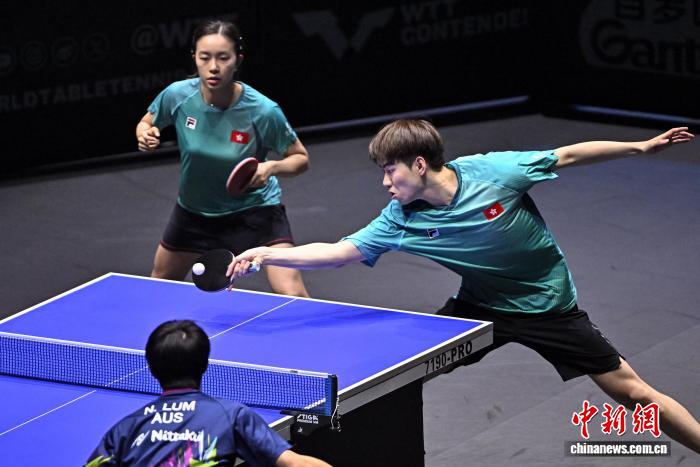 4月9日,2026年世界乒乓球职业大联盟(WTT)常规挑战赛太原站正赛在太原市滨河体育中心体育馆开赛,来自19个国家和地区的近百名选手向400点世界排名积分发起挑战。图为中国香港选手姚钧涛(右)/吴咏琳在比赛中。中新社记者 韦亮 摄