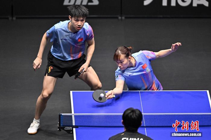 4月9日,2026年世界乒乓球职业大联盟(WTT)常规挑战赛太原站正赛在太原市滨河体育中心体育馆开赛,来自19个国家和地区的近百名选手向400点世界排名积分发起挑战。图为中国选手陈垣宇(右)/覃予萱在比赛中。中新社记者 韦亮 摄