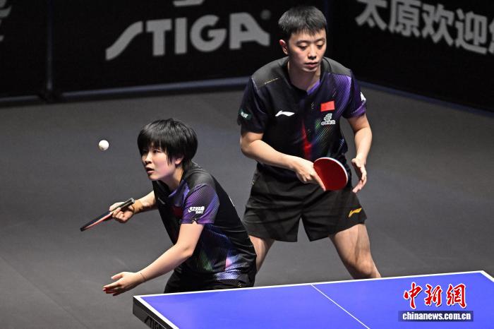 4月9日,2026年世界乒乓球职业大联盟(WTT)常规挑战赛太原站正赛在太原市滨河体育中心体育馆开赛,来自19个国家和地区的近百名选手向400点世界排名积分发起挑战。图为中国选手黄友政(左)/石洵瑶在比赛中。中新社记者 韦亮 摄